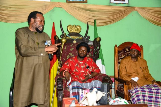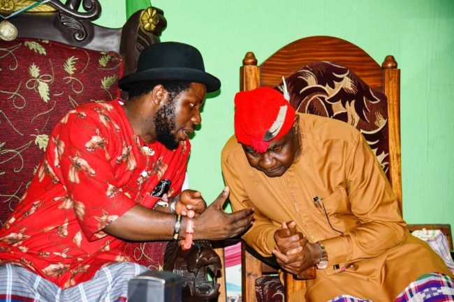 Senator Magnus Abe in a discussion with the Gberemene of Gokana Kingdom, King Festus Paago-Bagia, Gberesaakoo XIII, during a visit at the King’s palace.