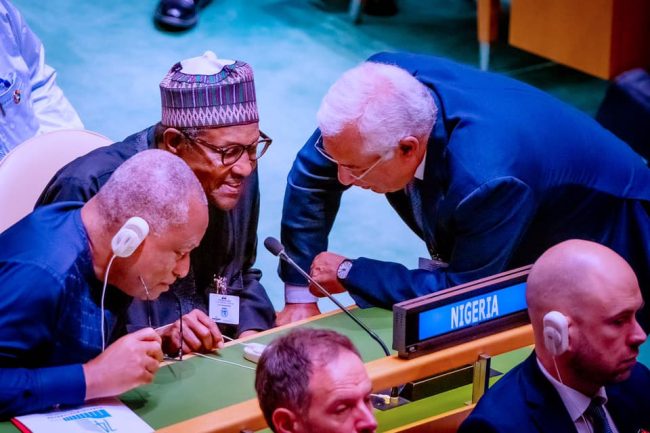 The News Agency of Nigeria (NAN) reports that Buhari was accompanied by the Minister of Foreign Affairs, Mr. Geoffrey Onyeama and Permanent Representative of Nigeria to the UN, Prof. Tijjani Muhammad-Bande.