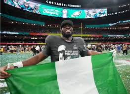 Ojomo, a Nigerian-born American football star, returned to his home country following his remarkable achievement as a member of the victorious Philadelphia team in the Super Bowl.
