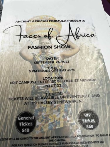 The Faces of Africa Fashion Show will take place on September 24, 2022, by 5pm at the NJIT Campus Center, ISO Bleeker St., Newark, New Jersey, United States of America (USA).