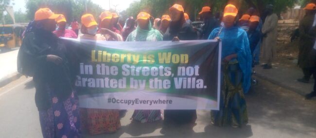 The protesters, who wore face caps with the inscription, #Occupy INEC, marched from the Federal Secretariat, directly opposite the Usman Faruk Secretariat, through the front of the Sokoto State House of Assembly, taking a turn adjacent to the Federal High Court of Appeal before ending at the Sokoto INEC office.
