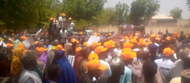 Nigerians in Sokoto, the Seat of the Caliphate, Wednesday, gathered in thousands to protest, demanding the immediate sack of the chairman of the Independent National Electoral Commission (INEC), Professor Joash Amupitan.