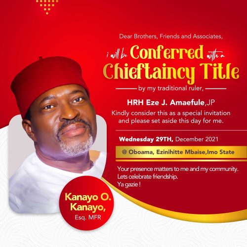 Kanayo.O. Kanayo bags Chieftaincy title today in Mbaise, Imo State