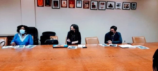 (Left to right) Dr Grace Ogiehor-Enoma, Chairman, Board of Directors, NANNNA; Ms Josona Tonda, Community Outreach Manager, Immigrant Health and Cancer Disparities, Memorial Sloan Kettering Cancer Centre (MSKCC); and Mr. Raul Hernandez, Outreach Coordinator for City College New York-MSKCC Partnership, at a meeting with Amb. Lot Egopija at Nigeria House, New York.