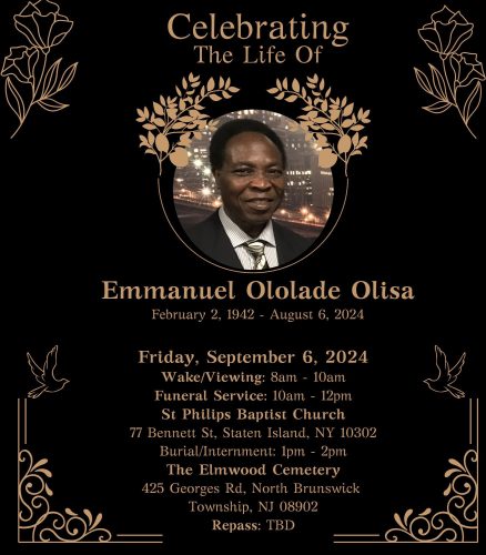 With deep sorrow, we announce the passing of Emmanuel Ololade Olisa on August 6, 2024. Born on February 2, 1942, in Ogbagi, Akoko Ondo State, Nigeria, to High Chief David Bamisile Olisa of Emuta Ogbagi and Mary Ade Olisa, Emmanuel’s life was marked by a relentless pursuit of knowledge, community, and love.