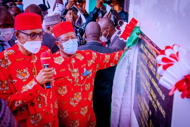 The President commenced his two-day visit to the State with the commissioning of projects at the state-owned King David University of Medical Sciences, Uburu, including a twin flyover, 12-kilometre dualised Federal Road, from Mbu, Enugu State to Uburu, the University Building and the University Medical Hospital, Facilities and Equipment.