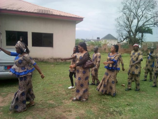 Mrs. Evelyn Osuagwu, Curator, National War Museum, Umuahia, leading a march past with the museum staff.