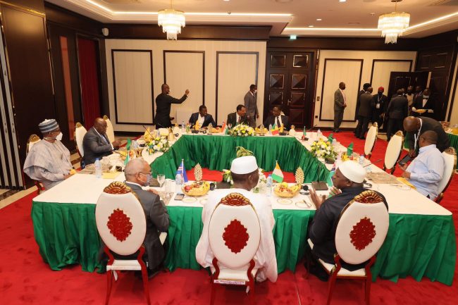 Present at the dinner were President of Ghana and Chairman of ECOWAS, Nana Addo Akufo-Addo, President of Togo, Faure Gnassingbe, Niger Republic President, Mohamed Bazoum,  President of Senegal, Macky Sall, Guinea Bissau President, Umaro Sissoco Embaló, Sierra Leonean President, Julius Bio, President of Cape Verde, Jose Maria Neves, President of The Gambia, Adama Barrow and President of Cote D’ Ivoire, Alassane Ouattara.