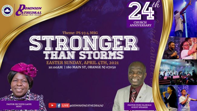 Pastor (Dr.) Toyin Laoye, Special Assistant to the Continental Overseer, The Americas, is the Host for the Service which starts at the Church’s Auditorium, 180 Main Street, Orange, at 10:00 AM.