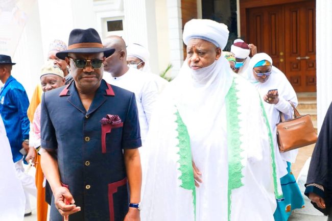 As the crisis in the main opposition party, the Peoples Democratic Party (PDP) continues to rage, the Sultan of Sokoto, His Royal Eminence, Alhaji Muhammadu Sa’adu Abubakar III, has paid the Rivers State Governor, Nyesom Ezenwo Wike a courtesy call.