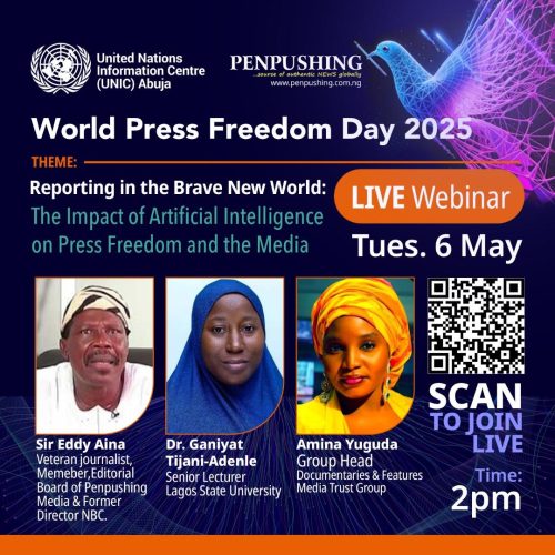 Meanwhile, Founder of Penpushing Media, Prince Dimeji Kayode-Adedeji, said the partnership with United Nations Information Centre (UNIC) has always been strategic especially in advancing ethical journalism that focuses on solutions to developmental challenges, and urged all journalists, media workers and other stakeholders to join the virtual discussion.