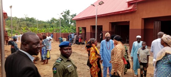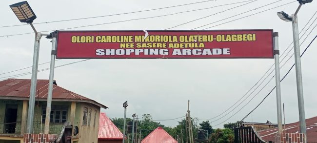 Pictures here show Dr. Princess Mrs. Nubi Joy Olagbegi-Apampa inspecting the well secured arcade, which is walled round, fully fitted with modern facilities, and which was built, not only to honour her late mother, but to uplift the people.