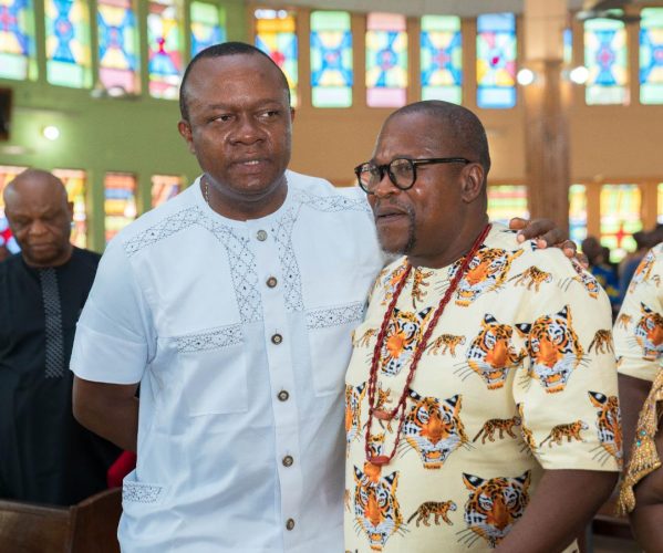 Valentine Ozigbo mourns with Sir Andy Azike as he buries his father