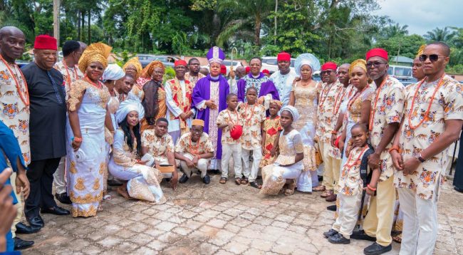 The burial ceremony began with a requiem mass at St. Charles Borromeo Catholic Church, Achina, presided over by His Lordship, Most Revd Dr Peter Okpaleke, the Catholic Bishop of Ekwulobia Diocese, alongside seven other priests.