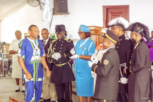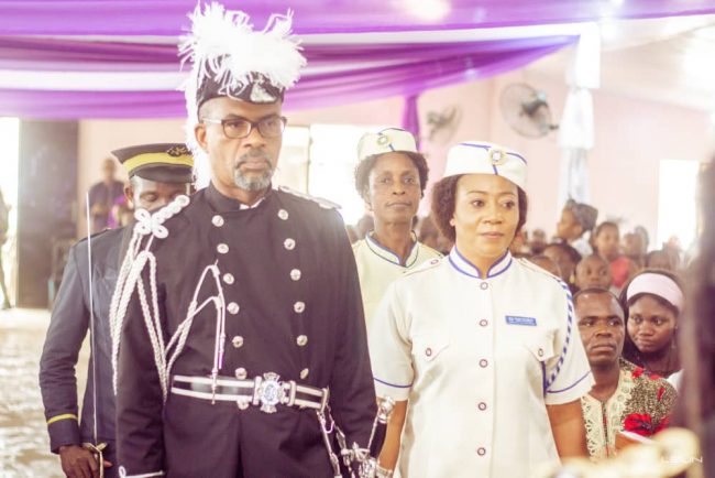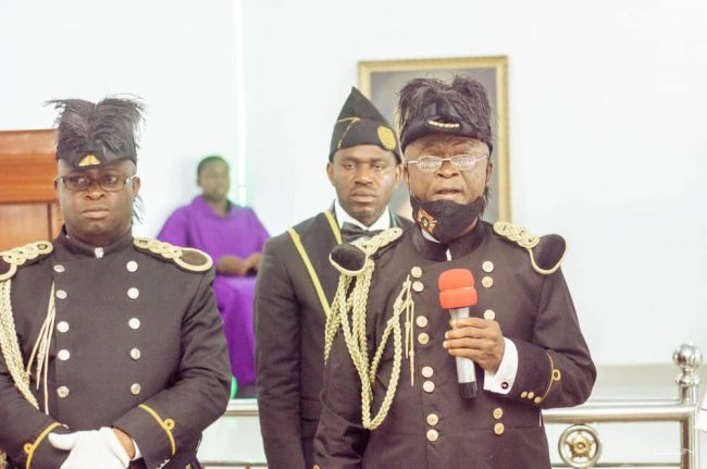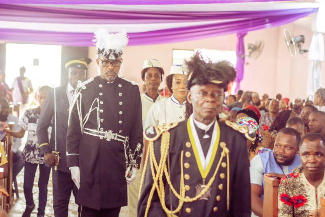 The Grand President, Uyo Grand Commandery, Brigadier – General Umohandikan while presenting the Eshilamas to the Church, commended them for their steadfastness and support to the Church.
