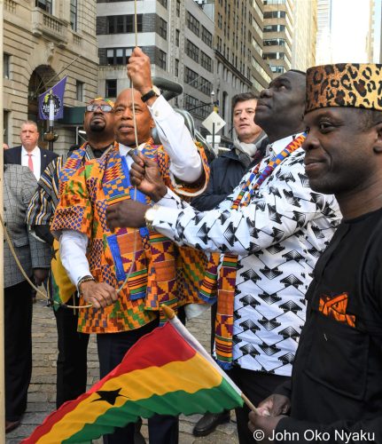 The Ceremony was held under the auspices of the Ghana Mission in New York and took place at the Bowling Green Park (Lower Manhattan) Broadway & Whitehall Street, New York.